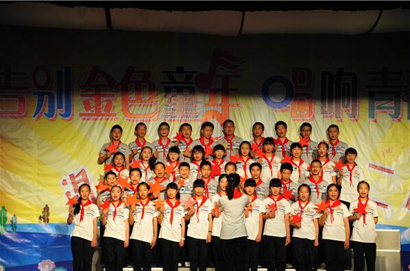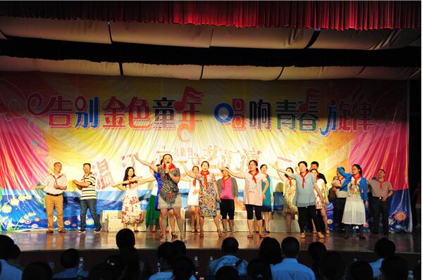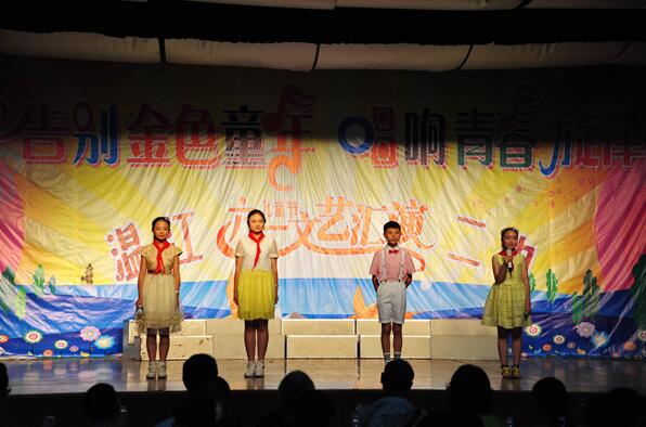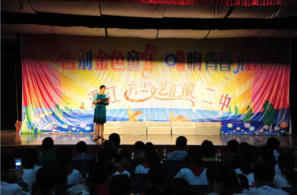 2015年5月29日星期五下午,温江二中七年级在学校多功能厅举行主题为“告别金色童年,唱响青春旋律”的庆祝“六一儿童节”文艺演出活动。