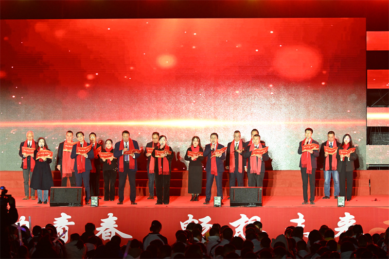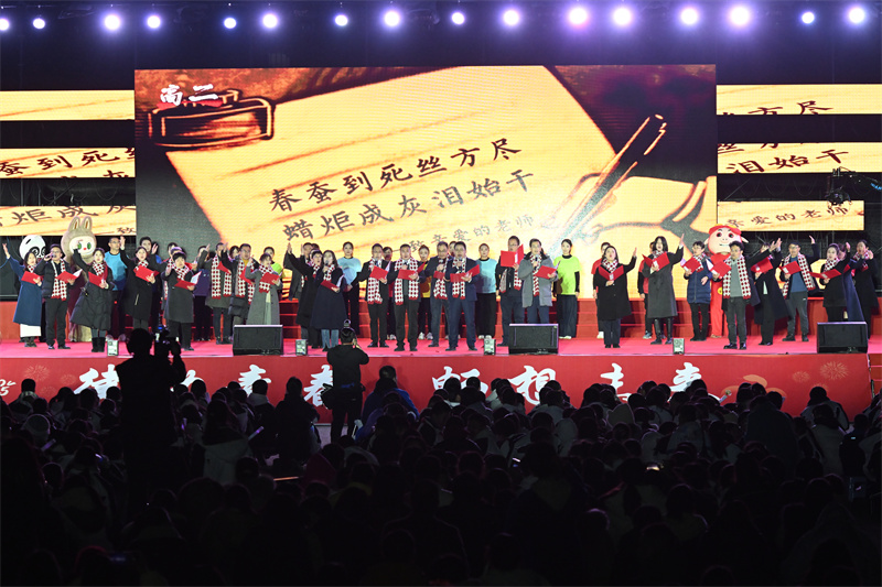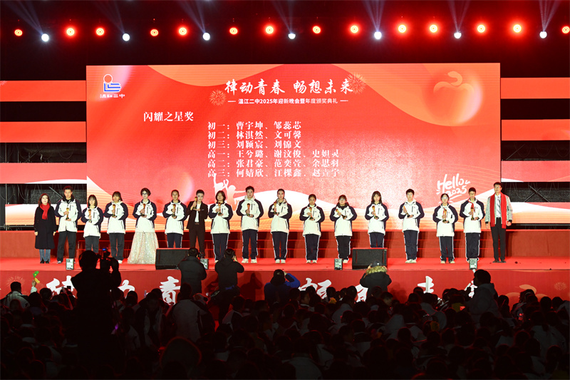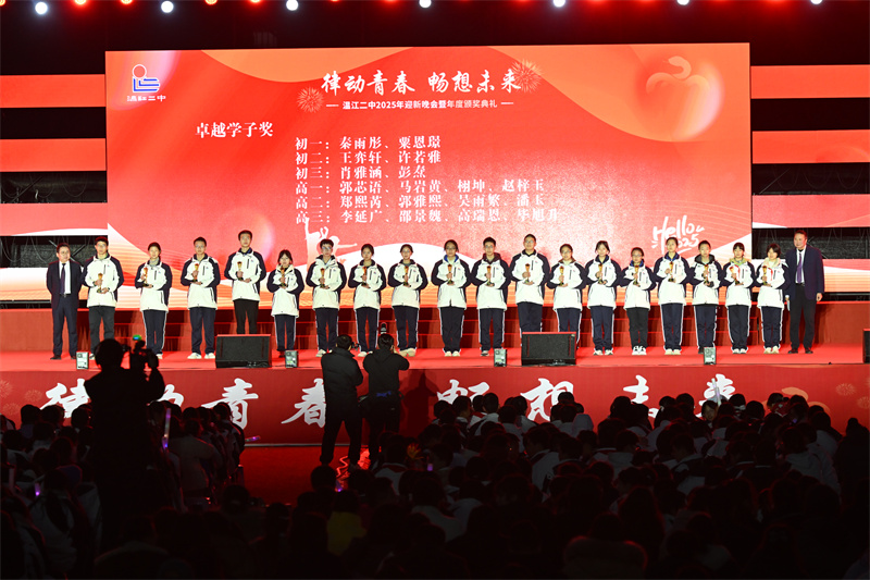 旧岁去,华彩乐章余音袅袅;新年至,璀璨星光熠熠生辉。回首2024,二中人携手并肩,团结奋进,用汗水铸就辉煌,用智慧创造精彩;畅想2025,二中人怀揣梦想,满怀期待,以奋斗迎接曙光,以勇气迎接挑战。为珍藏2024年每一个感动的瞬间,更为了迎接2025年的崭新篇章,12月30日18点整,我校2025年迎新晚会暨年度表彰大会在田径场隆重举行。全校师生欢聚一堂,激情澎湃、载歌载舞,唱响青春的旋律,舞动希望的未来。学校党委书记季玲,校长金忠,责任督学袁成,副校长田德义、熊书钢、白冰、周何霞出席了本次晚会。