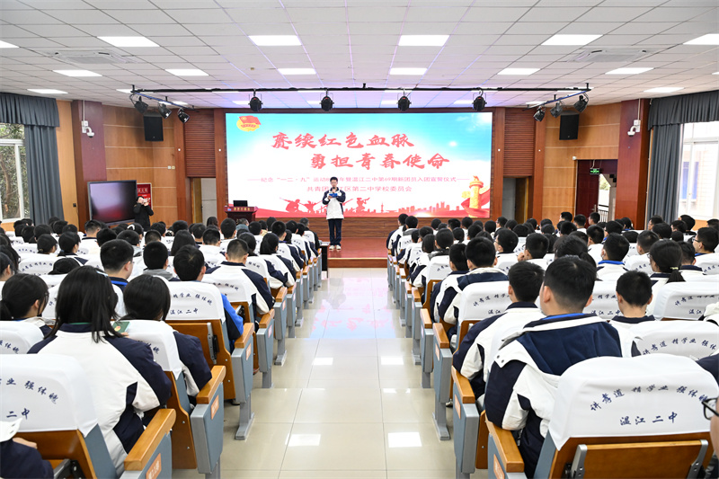 12月6日,成都市温江区第二中学校团委举行以“赓续红色血脉 勇担青春使命”为主题的新团员入团宣誓仪式。