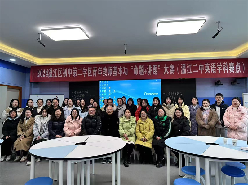 12月10日,温江区初中第二学区青年教师基本功“命题+讲题”(英语学科)决赛在我校隆重开赛。