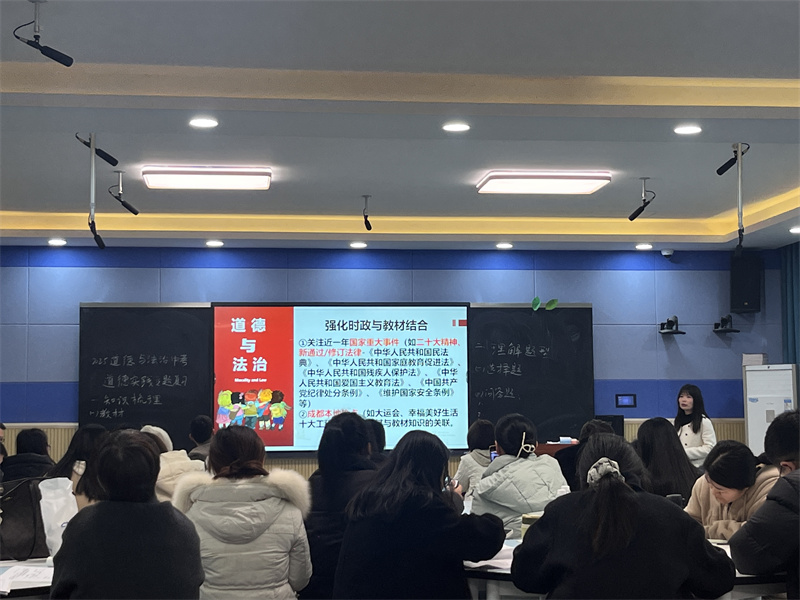 春风催新绿,研路绽芳华。为深化对新课标理念的理解,落实核心素养培育任务,实现铸魂育人目标与学业质量评价标准有效衔接。2月26日,温江区“中考命题研究暨复习策略研究分享”研讨活动在我校举行。本次研讨会由温江区初中道德与法治教研员黄丽老师主持,温江区九年级道德与法治学科教师参加了本次研讨。