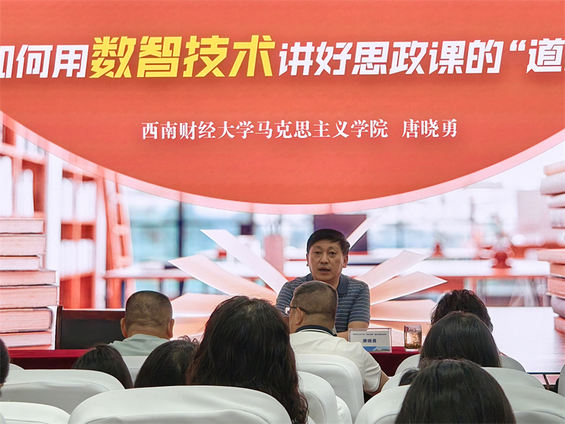 下午,西南财经大学唐晓勇教授带来《如何用数智技术讲好思政课的“道理”》专题讲座。他阐释了思政课需讲清的“政理”“学理”“情理”等几类道理,指出教师应具备政治修养等素养,并介绍了AI 辅助备课、驱动互动等人工智能赋能思政课教学的路径,通过VR 重现历史场景等案例,展现数智技术为思政课注入的新活力。