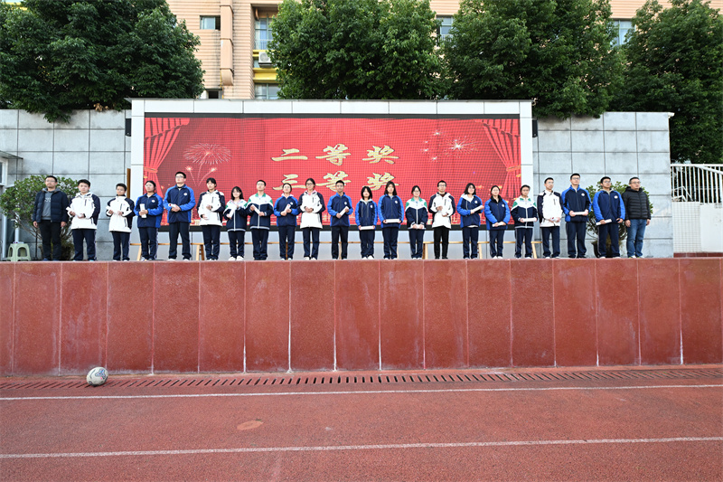 随后,张兰老师宣读荣获二等奖、三等奖的学生名单,年级组长为各班班长颁发奖状并合影。这些同学在日常学习中踏实勤奋、积极进取,展现了高一年级笃行不怠、昂扬向上的精神风貌。