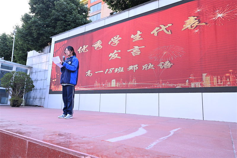 榜样的力量催人奋进。特等奖获得者高一18班邓欣语同学作为优秀学生代表发言,她围绕“沉淀、坚韧、自律”分享了学习心得与成长感悟,展现了二中学子善思笃行、勇于超越的优良品质。
