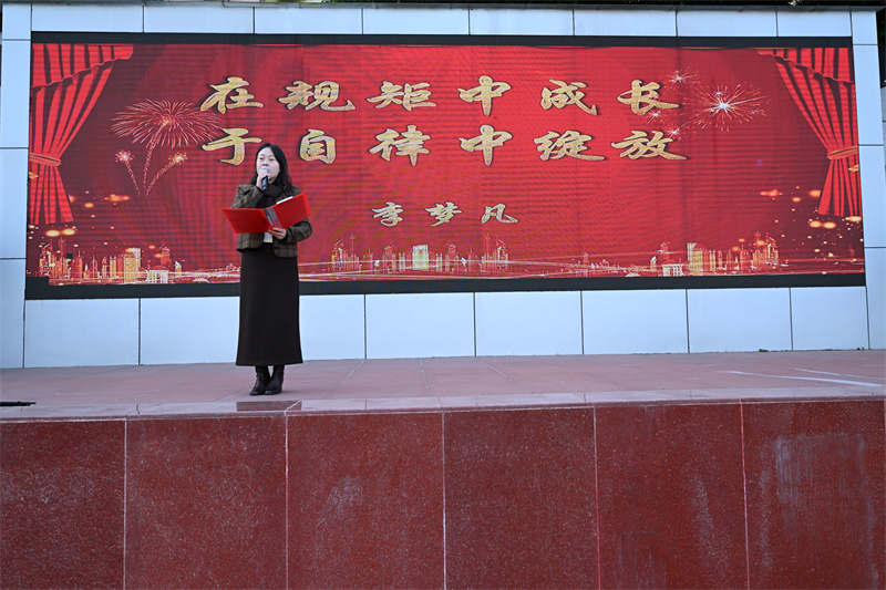 年级分管领导李校长在随后的讲话中以在规矩中成长,于自律中绽放”为主题寄语全体同学。希望同学们将自律内化为习惯,将规矩升华为修养,在青春的画卷上绘就属于自己的精彩篇章。荣誉属于过去,奋斗成就未来。期待全体同学以榜样为镜,以规矩为尺,以梦想为帆,在接下来的学习征程中,用自律赢得自由,用奋斗书写青春。