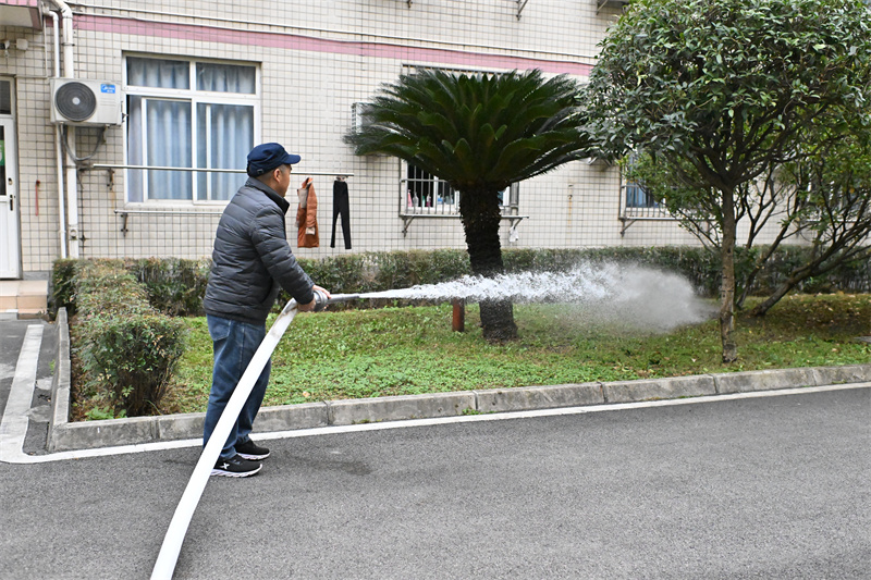 灭火器实操演练结束后,消防水阀使用培训随即展开。消防专业人员带领参训人员来到宿舍楼消防栓旁,详细讲解水阀结构、开启方式、压力调节及水管连接技巧,结合校园消防栓使用特点,重点强调操作前检查要点与应急响应流程,确保火灾发生时能迅速启用消防设施。参训人员认真聆听,并亲手操作水阀、练习水管连接与出水,在实践中巩固知识、提升应急能力。