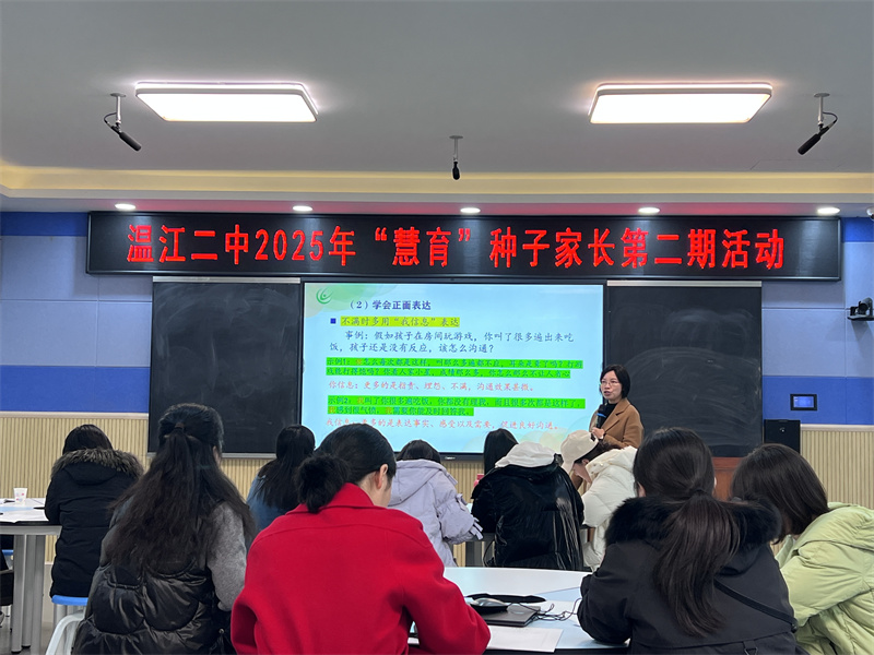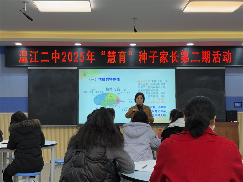 苏霍姆林斯基曾说:“教育的效果取决于学校与家庭的一致性,若没有这种一致性,学校的教学与教育就会像纸做的房子一样倒塌。”为帮助家长更科学地理解青春期孩子的身心发展特点,掌握温暖而有效的亲子沟通方法,12月5日下午,温江二中“慧育”种子家长学习班第二期课程如期举行。本期聚焦“青春期孩子的教育与相处之道”,为家长们带来了一场既有理论高度又具实践意义的家庭教育分享。