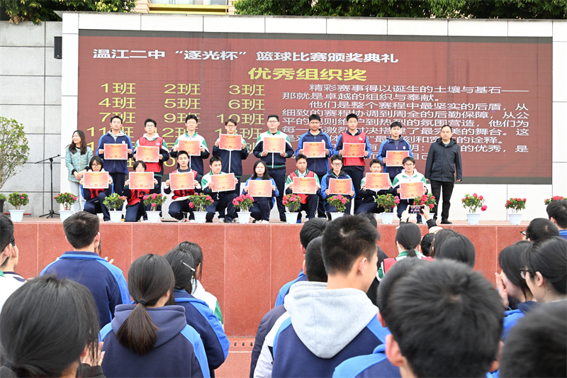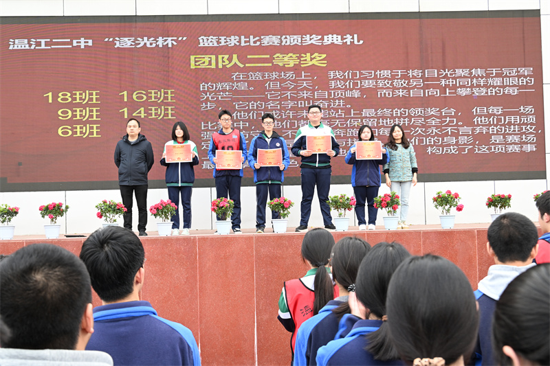 3月20日,温江二中足球场掌声雷动、暖意涌动,高2023级“逐光杯”校园篮球联赛颁奖典礼在此隆重举行。年级秉持着“活动育人、仪式育人”的核心理念,以有始有终的闭环设计、细致周全的仪式安排,让这场凝聚青春与热血的篮球盛事,在阵阵掌声与满心感动中圆满收官。