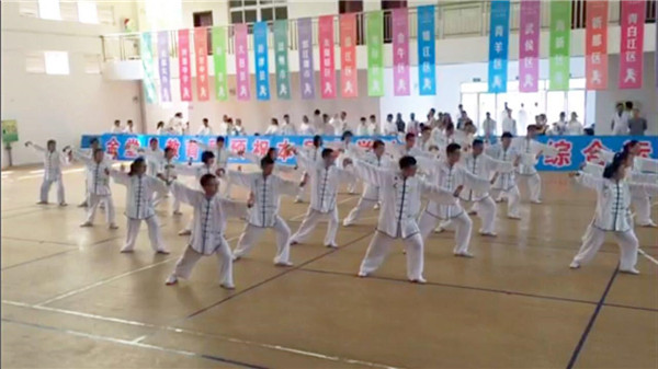 热烈祝贺温江二中太极拳队在成都市第四届中学生(高中)综合运动会太极拳项目中,荣获一等奖。